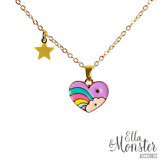 NECKLACE RAINBOW HEART/UNICORN